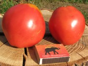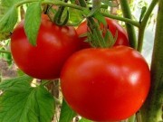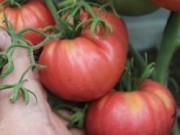 плоды плоскоокруглые, красные, до 400г и выше в открытом грунте. Высота 1,2м.