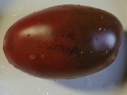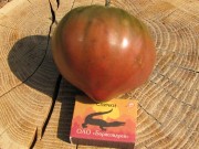 низкорослый, до 1 метра. Плоды плоскоокруглые, бордово-шоколадные, до 400 г.