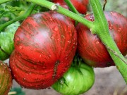 Плоды темно-бордовые с зелеными штрихами, округлые, до 300г, вкусные. Высота 60см. В пакете 10 шт.