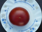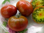 плоды темно-малиновые с зелеными полосками, до 300г и выше. Высота 1,2м.