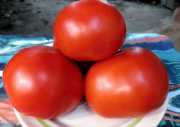 плоды плоскоокруглые, красные, до 400г и выше в открытом грунте. Высота 1,2м.