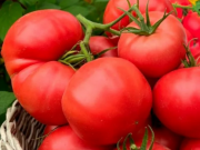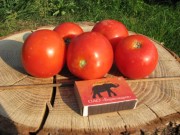 томаты округлые, малиново-красные, массой до 500г. Высота до 1м.