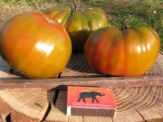 Плоды округло-плоские темно-бордово-красные, до 600 г. Высота 1,5м.