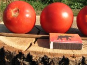 Плоды красного цвета округло-плоской формы, весом до 800г и выше. Высота до 1,8м.