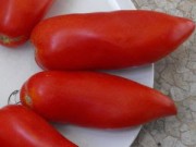 Длинные перцевидные плоды, мясистые, со вкусной мякотью, до 200 г.